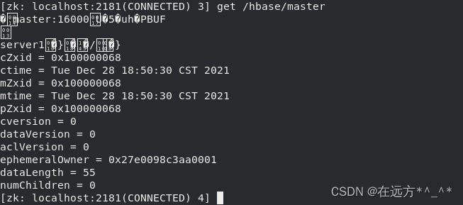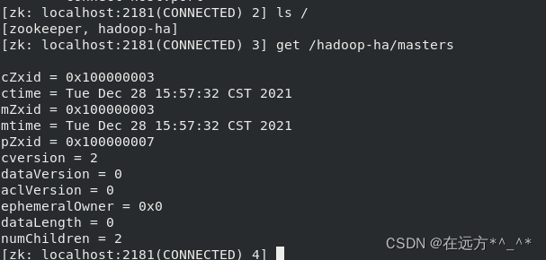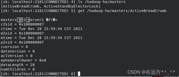[zk: localhost:2181(CONNECTED) 3] get /hadoop-ha/masters