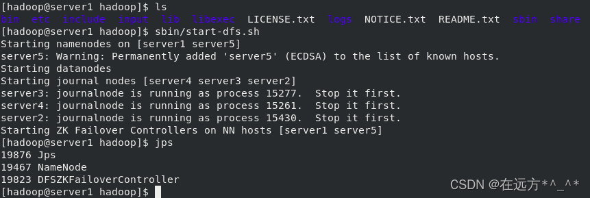 ?[hadoop@server1 hadoop]$ ls [hadoop@server1 hadoop]$ sbin/start-dfs.sh