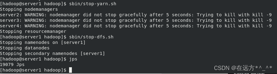 [hadoop@server1 hadoop]$ sbin/stop-yarn.sh