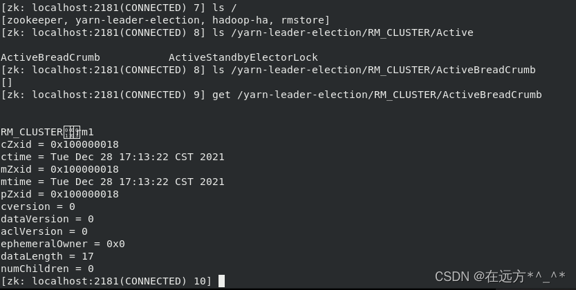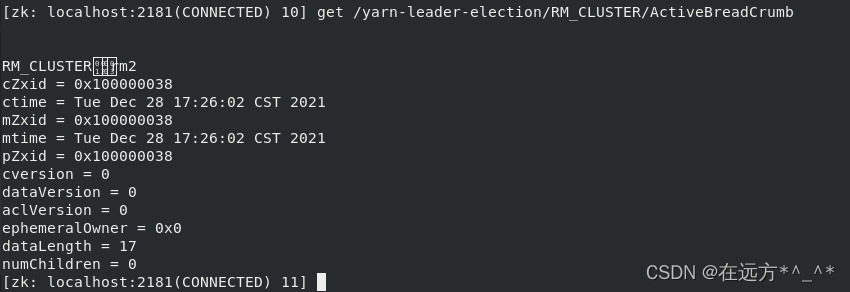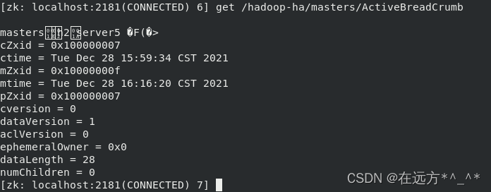 [zk: localhost:2181(CONNECTED) 5] get /hadoop-ha/masters/ActiveBreadCrumb
