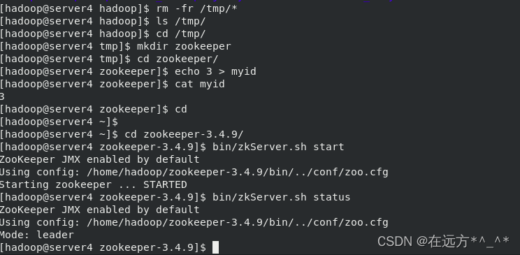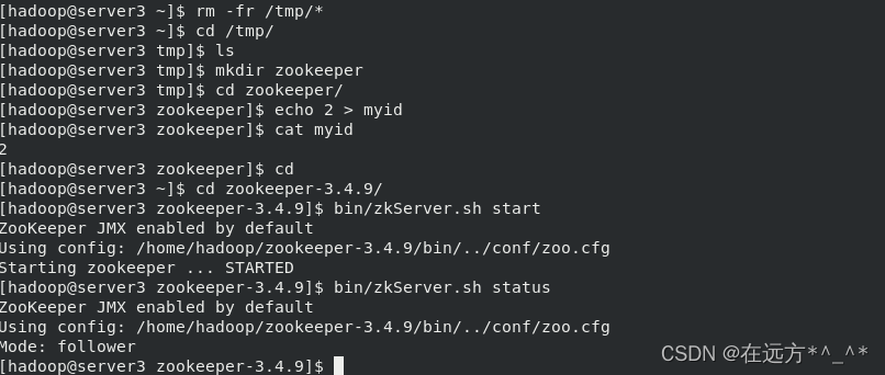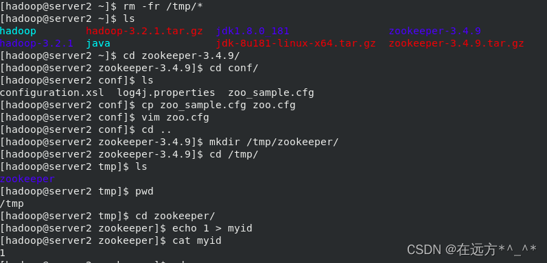 [hadoop@server2 zookeeper-3.4.9]$ cd /tmp/