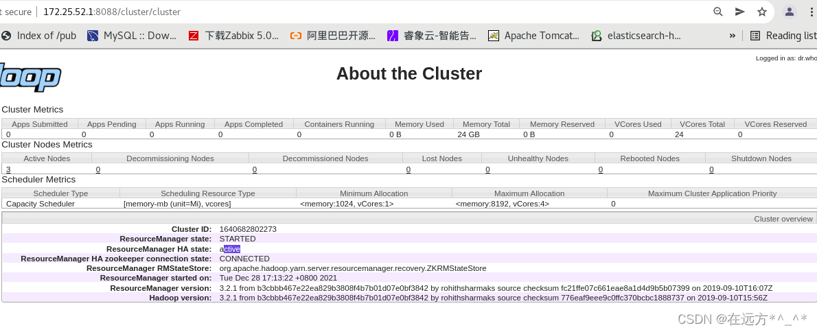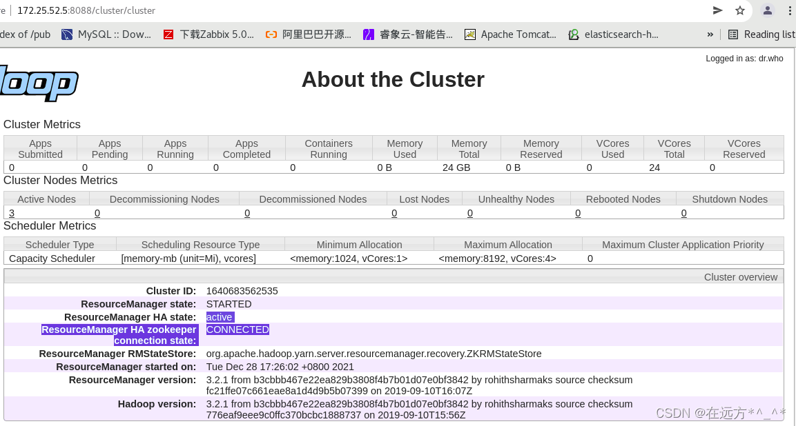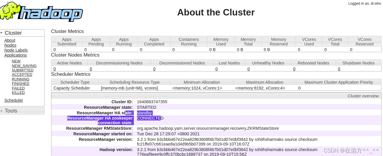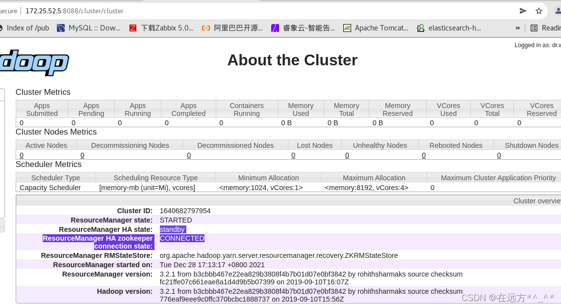可以看到此时集群中 ResourceManager2 为 Active。?