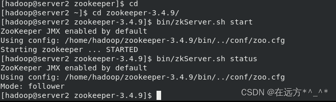 [hadoop@server2 ~]$ cd zookeeper-3.4.9/