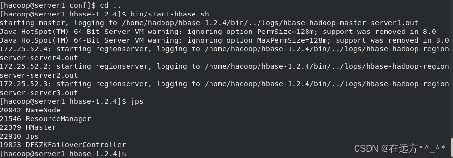 [hadoop@server1 hbase-1.2.4]$ bin/start-hbase.sh