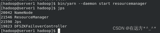 修复: [hadoop@server1 hadoop]$ bin/yarn --daemon start resourcemanager [hadoop@server1 hadoop]$ jps