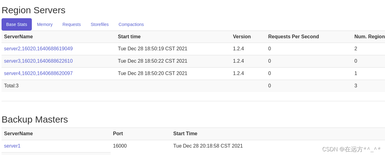 ? HBase Master 默认端口时 16000,还有个 web 界面默认在 Master 的 16010 端口上,HBase RegionServers 会默认绑定 16020 端口,在端口 16030 上有一个展示信息的界面。