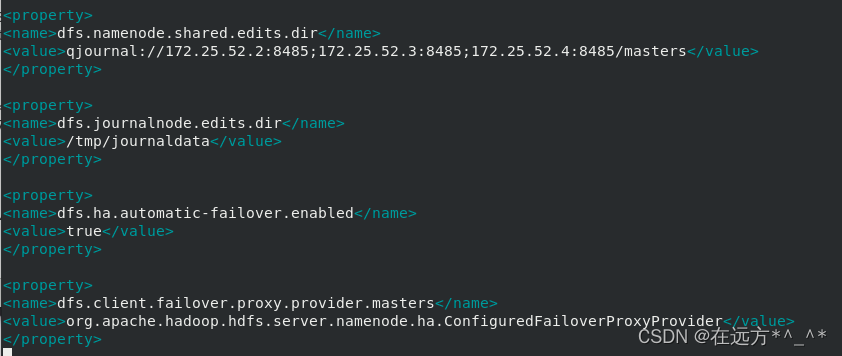 <value>qjournal://172.25.52.2:8485;172.25.52.3:8485;172.25.52.4:8485/masters</value>