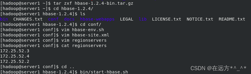 [hadoop@server1 ~]$ cd hbase-1.2.4/