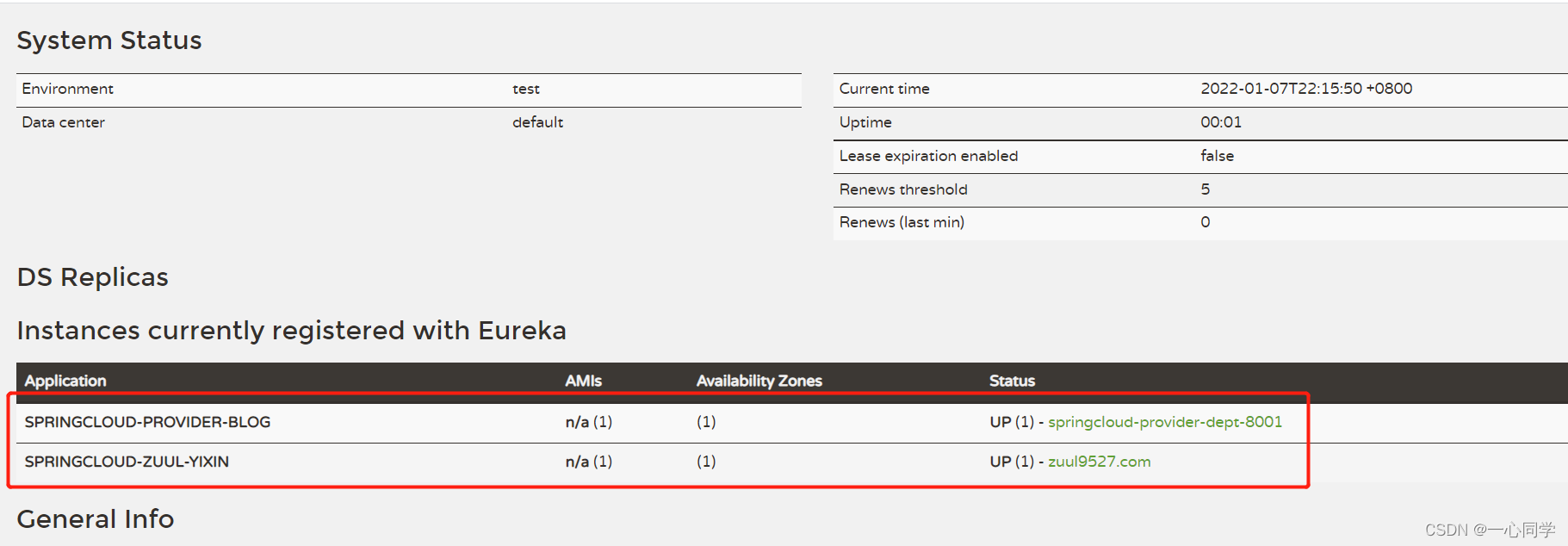 出现以下界面,说明成功把我们的两个服务(服务生产方和路由网关)注册进来了。