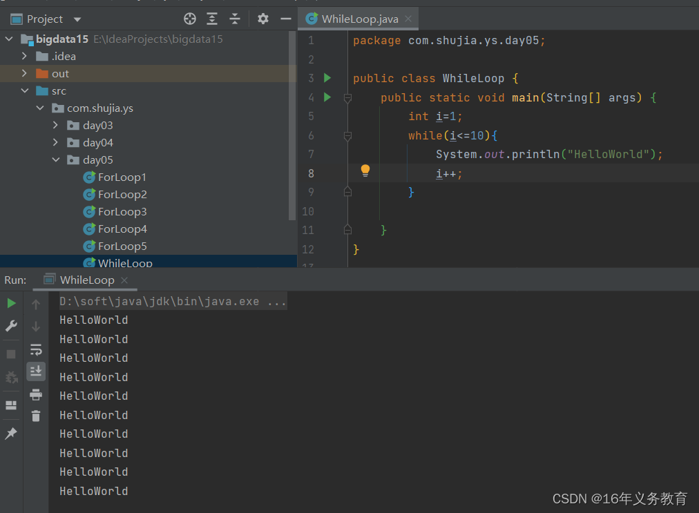 (1)利用while循环输出10个Hello World。