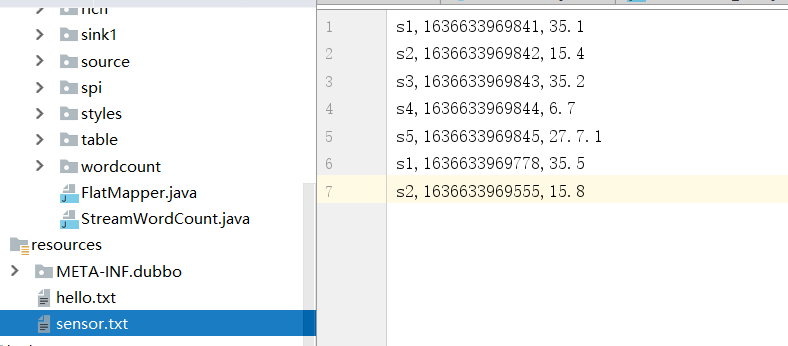 在工程目录的resources目录下有一个sensor.txt文件,如下图所示