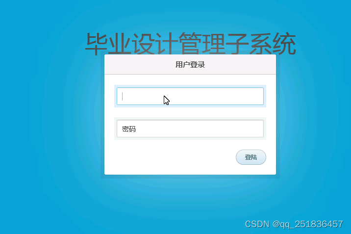 二、功能介绍 (1)权限管理:对权限信息进行添加、删除、修改和查看 (2)用户管理:对用户信息进行添加、删除、修改和查看 (3)专业管理:对专业信息进行添加、删除、修改和查看 (4)课题管理:对课题信息进行添加、删除、修改和查看 (5)选题管理:对选题信息进行添加、删除、修改和查看 (6)文件类型管理:对文件类型信息进行添加、删除、修改和查看 (7)提交文件管理:对提交文件信息进行添加、删除、修改和查看 (8)学生成绩管理:对学生成绩信息进行添加、删除、修改和查看 (9)答疑管理:对答疑信息进行添加、删除、修改和查看 三、注意事项 ? ?1、管理员账号:admin 密码:admin? ? ?2、开发环境为vs2010,数据库为sqlserver2008,或者以上版本都可以,使用c#语言开发。 ? ?3、数据库文件名aspnetbylw.mdf ? ? ?4.系统首页地址:login.aspx