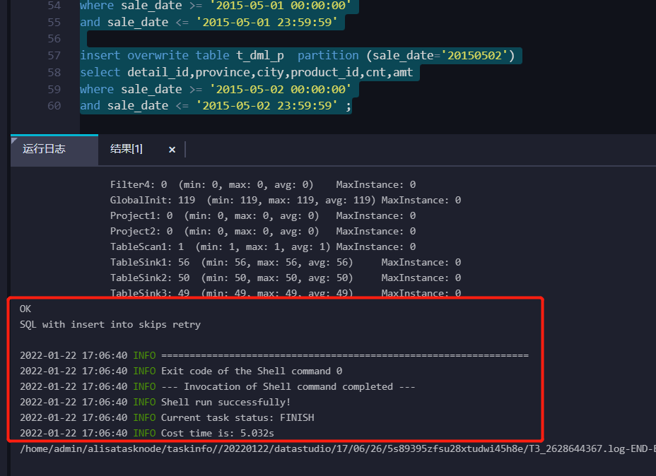 - 对于同一张表的不同分区,不能同时有insert overwrite 和insert into 操作