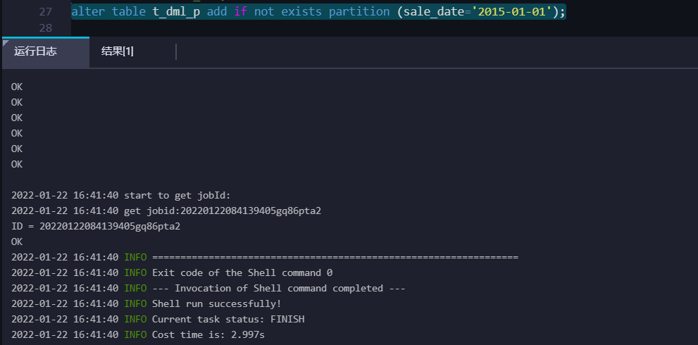 2. 添加分区  3. 往分区添加数据  4. 覆盖插入  5. 分区表数据操作 (依次执行下面的三个操作,添加分区、插入数据、检查分区表数据)  6. 清空分区表 使用覆盖插入的方式清空非分区表