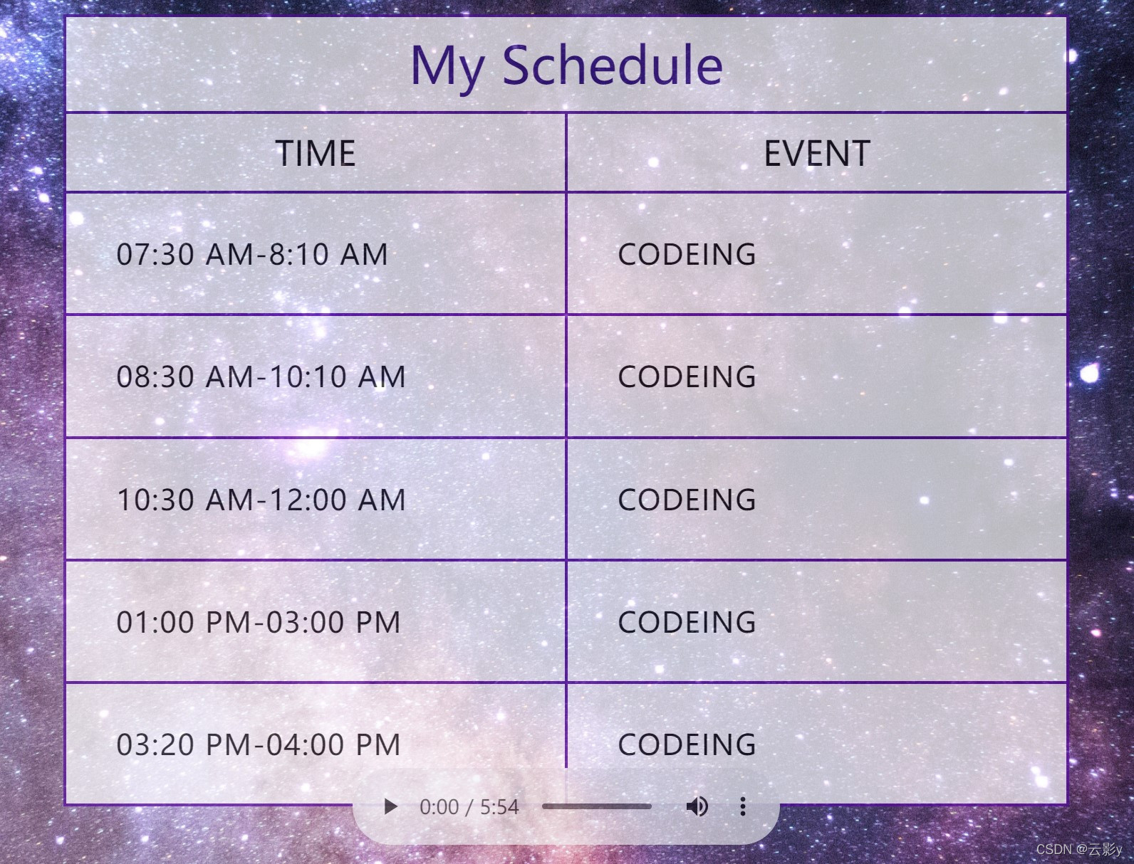 <tr><th colspan="2"><h1>My Schedule</h1></th></tr>
