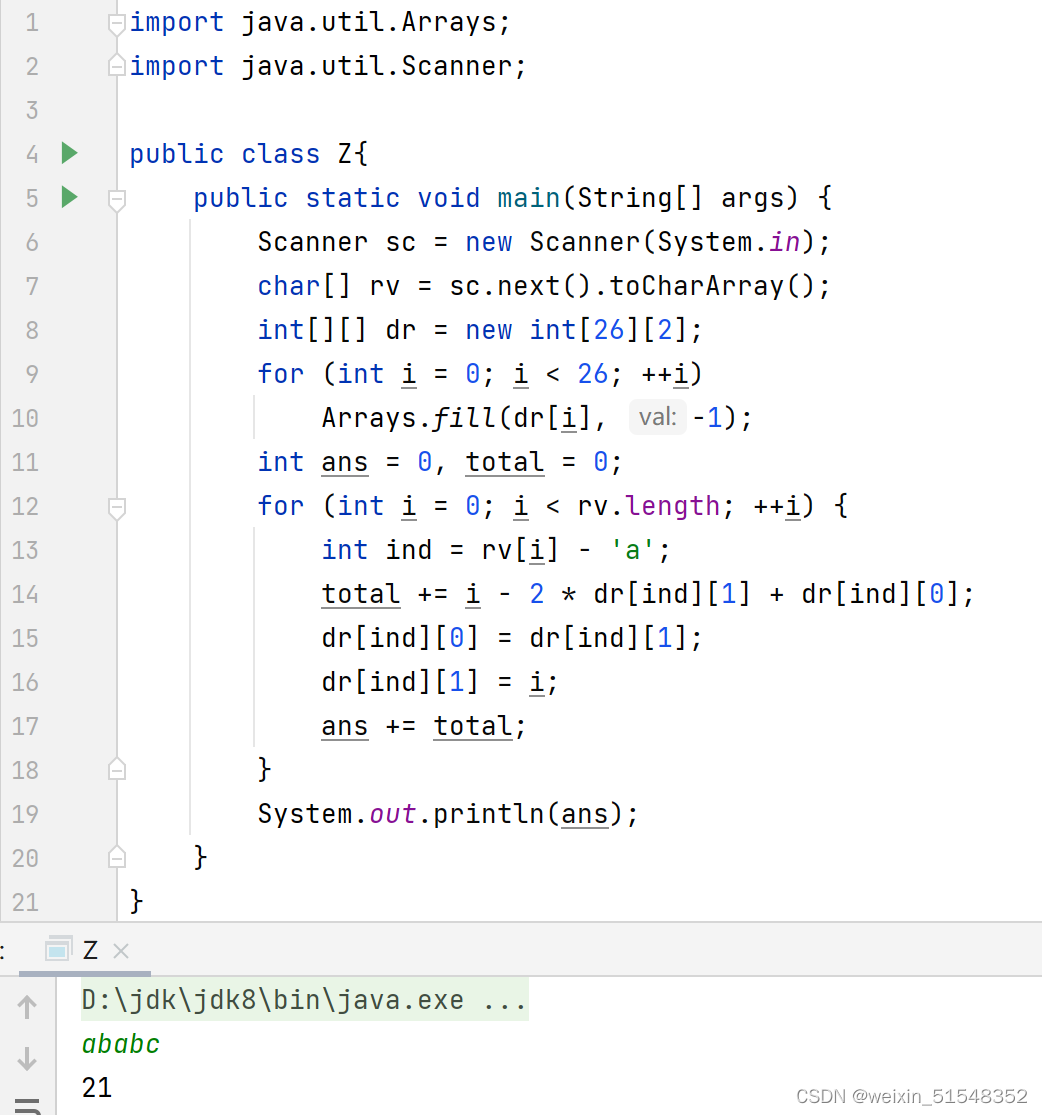 total += i - 2 * dr[ind][1] + dr[ind][0];