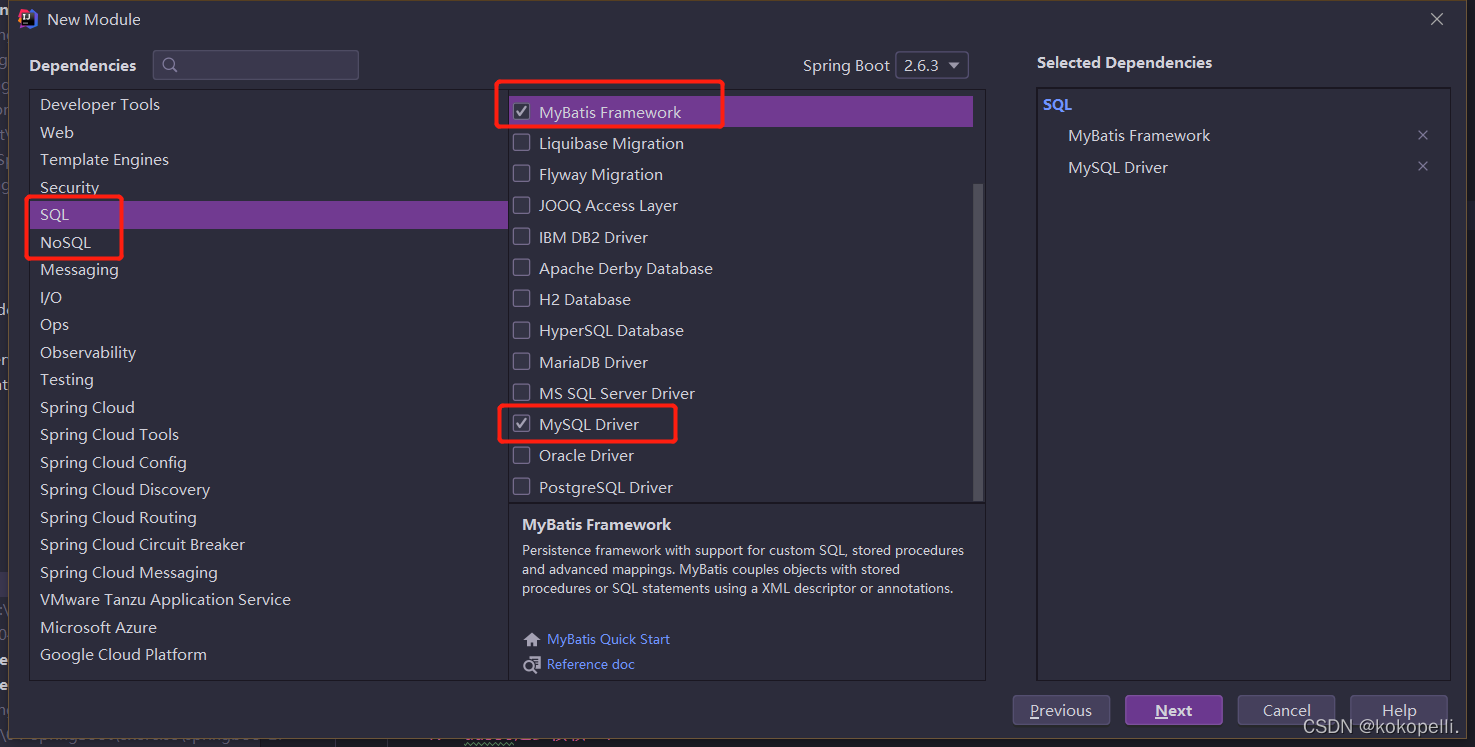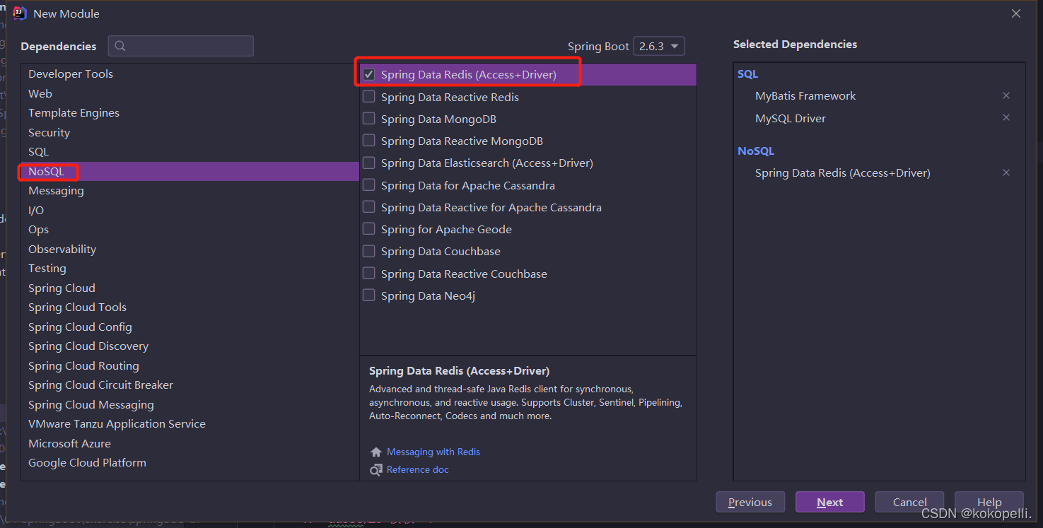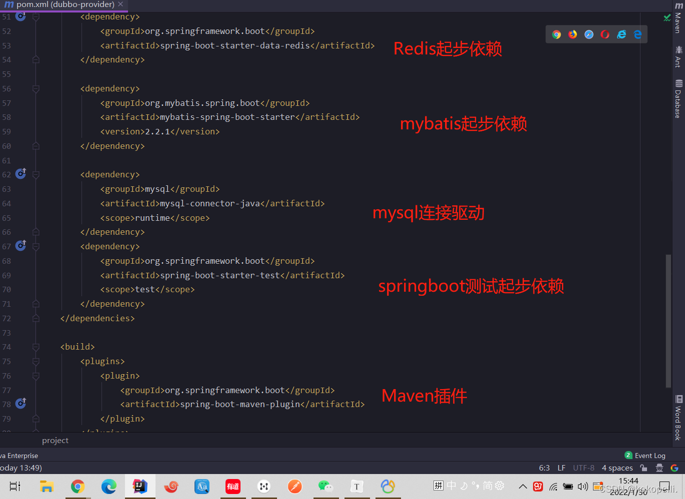 (mysql驱动 mybatis框架 redis驱动等起步依赖)