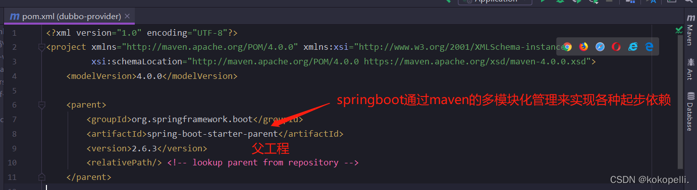 对于暴露接口工程/dubbo/zookeeper的依赖还需要手动添加