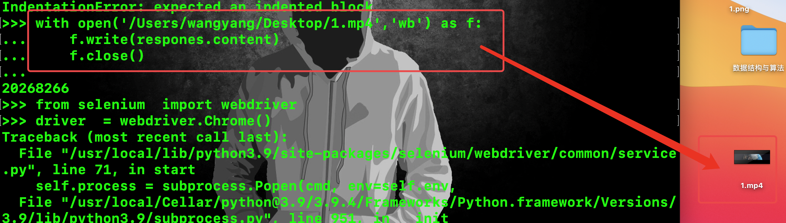 with open('/Users/wangyang/Desktop/1.mp4','wb') as f: