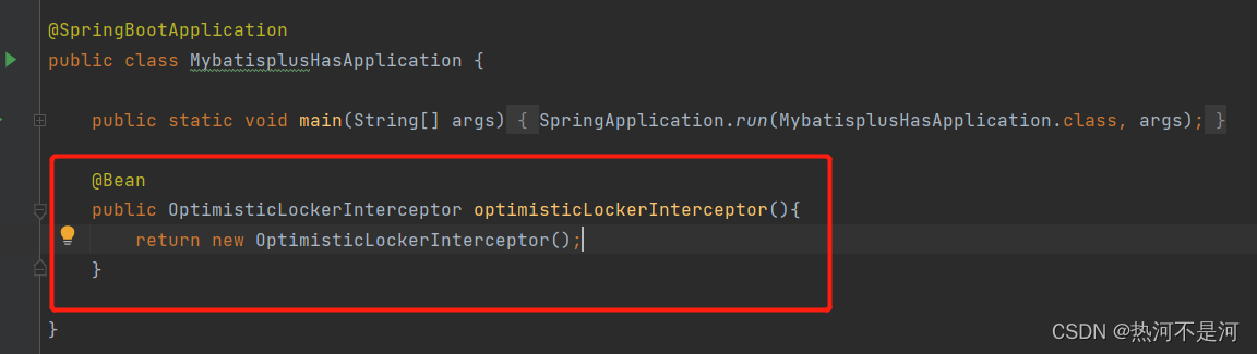 3.配置一个乐观锁的插件(springboot工程为例)?,启动类中添加如下内容