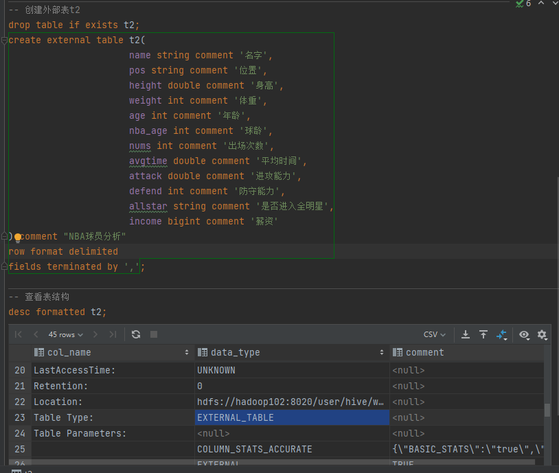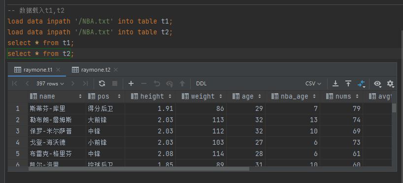 下面我们将用一个关于NBA球员分析的数据进行区别内部表和外部表。