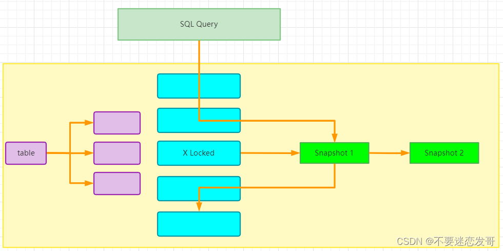 如果读取的行正在执行DELETE或UPDATE操作,这时读取操作不会因此去等待行上锁的释放。相反地,InnoDB会去读取行的一个最新可见快照。