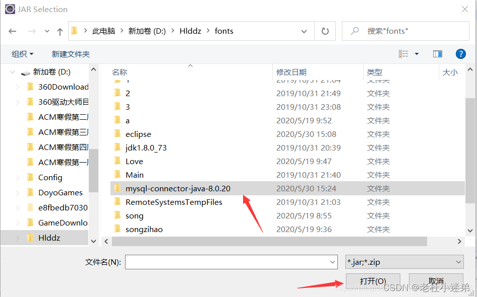 然后选择我们刚刚解压完的那个mysql-connector-java-8.0.20文件,即可成功添加数据库驱动程序。