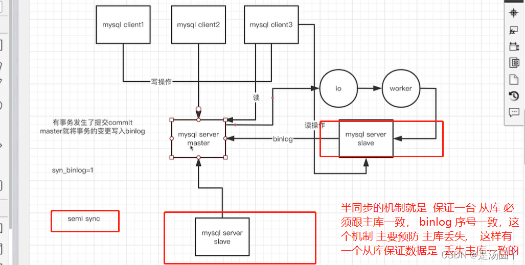 3:使用半同步机制(semi? sync)跟业务无关,主要去 保证最终一致性,(用于主从切换场景,当主库出现问题宕机以后,所以必须保证 有一台slave 跟主库必须一致)