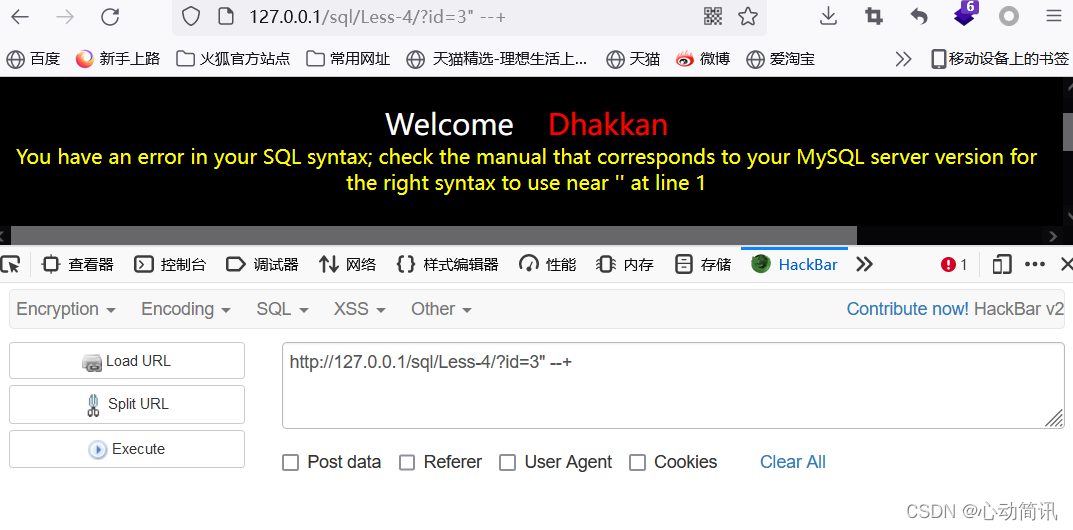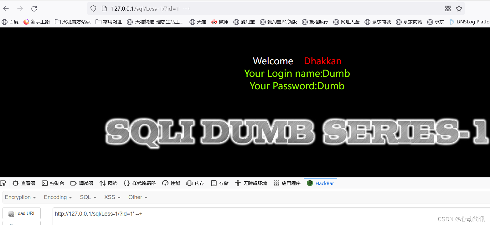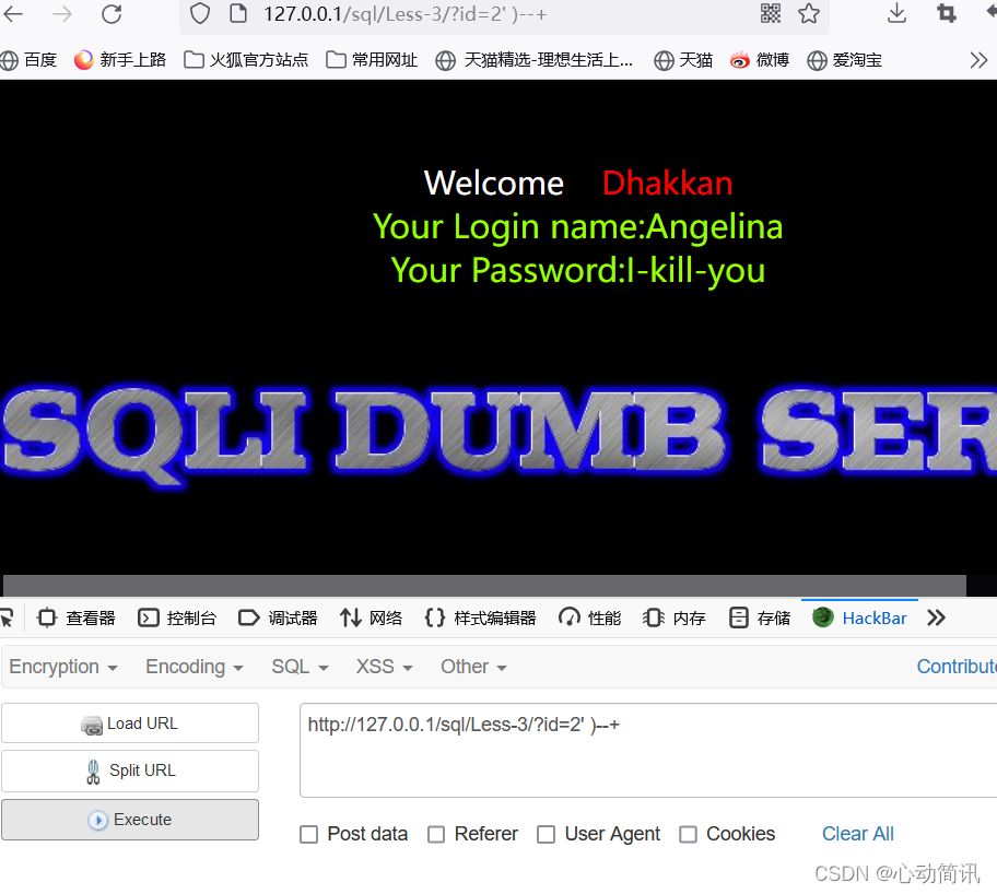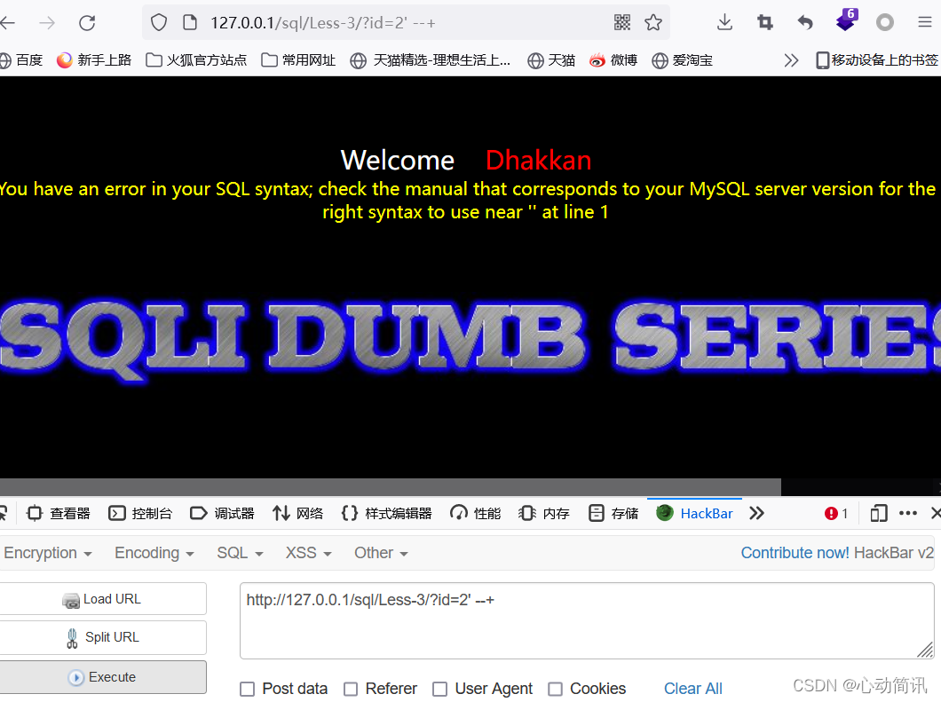 ?3.输入--+将sql后面的语句注视掉后,发现页面回显正常,则证明这个地方是单引号字符型注入