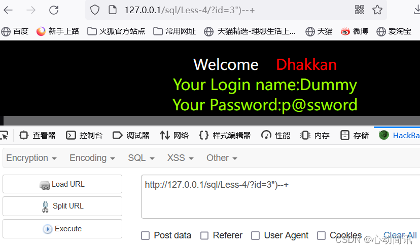 与第三关类似,第四关使用? ?("")? ?的方式闭合字符串,然后可以优先使用联合查询注入