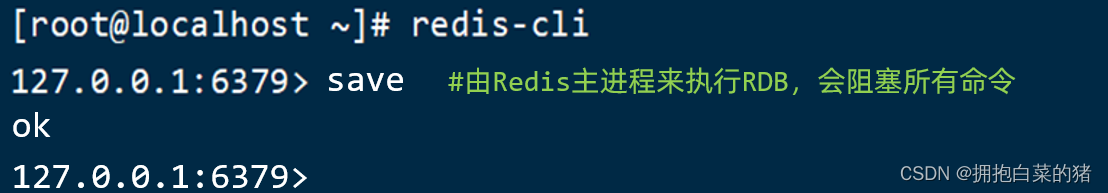 save命令会导致主进程执行RDB,这个过程中其它所有命令都会被阻塞。