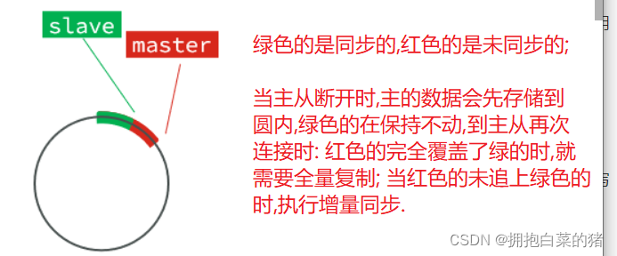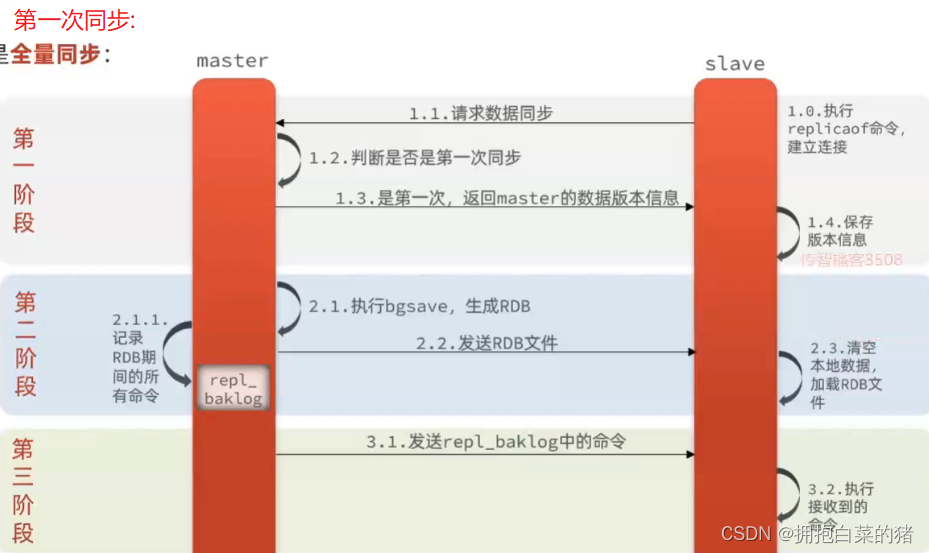 实现主节点与从节点的数据同步,分为第一次全部数据的同步和更新性部分数据的同步,又叫全量同步和增量同步。