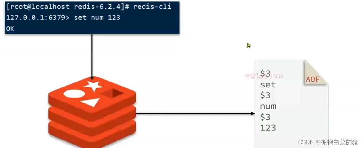 # 表示每执行一次写命令,立即记录到AOF文件 appendfsync always? # 表示写命令执行完先放入AOF缓冲区,每隔1秒将缓冲区数据写到AOF文件,是默认方案 appendfsync everysec? # 写命令执行完先放入AOF缓冲区,由操作系统决定何时将缓冲区内容写回磁盘 appendfsync no