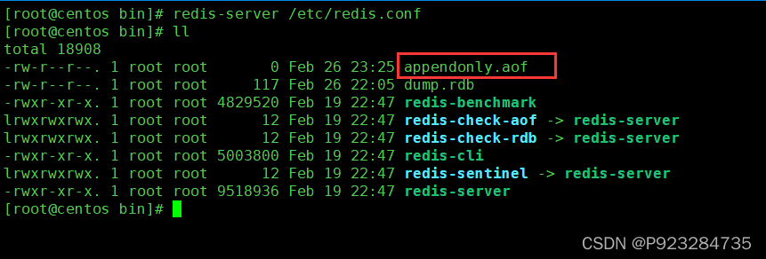 启动服务后,会自动生成aof文件,如下:  注意:当AOF和RDB同时开启时,默认读取AOF,所以查看数据时是空。 我们添加数据,看一下AOF文件大小,如下: