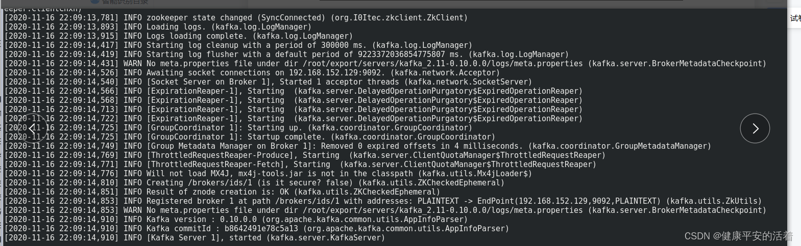 注意事项:在kafka启动前,一定要让zookeeper启动起来。
