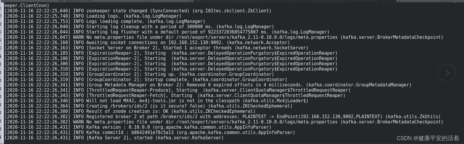 可以看到:这3个节点都成功start,没有报错,ok,到此kafka的集群搭建完成。?