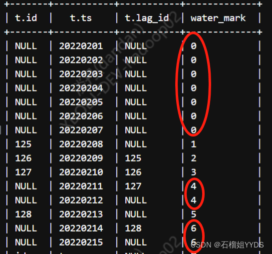 ,lag(water_mark,1,water_mark) over(order by ts) as lag_water_mark