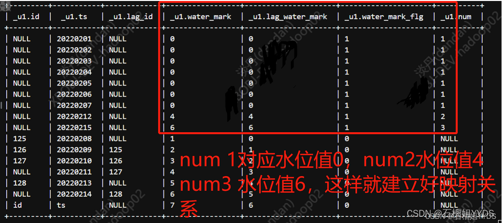 ,DENSE_RANK() over(order by water_mark) as num --注意此处是对水位进行排名,所以order by后是water_mark而不是ts