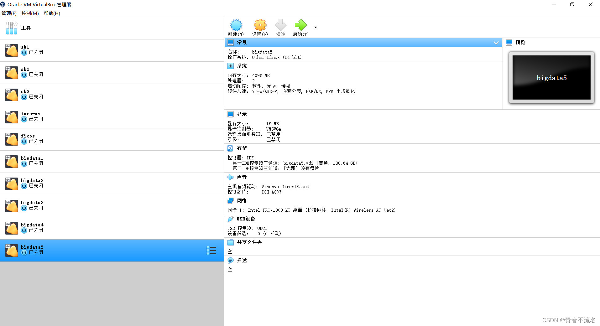 描述:使用Oracle VM VirtualBox搭建部署的五台虚拟机,使用系统Centos(2009)
