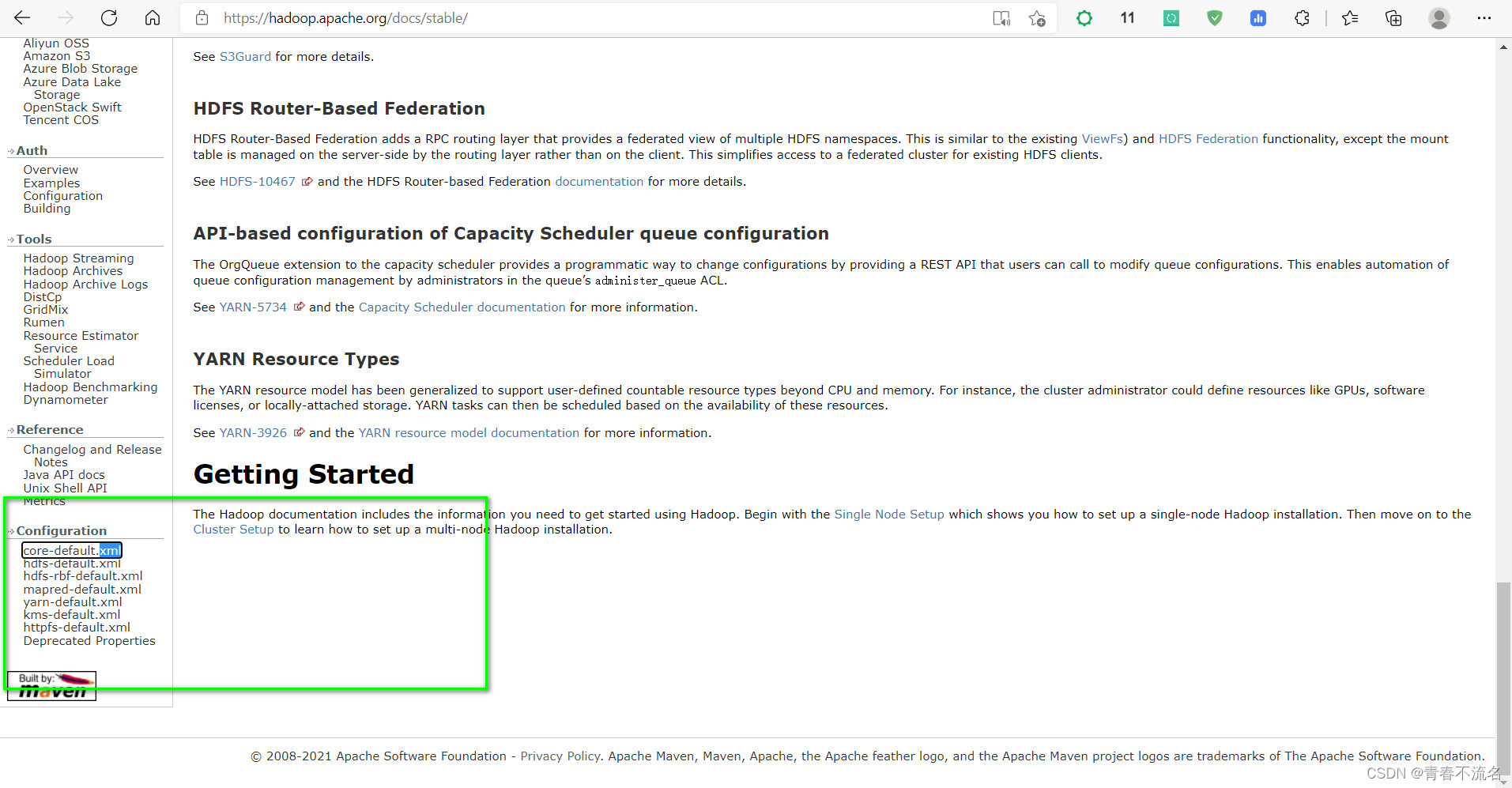 官方XML配置文件的地址Hadoop – Apache Hadoop 3.3.1