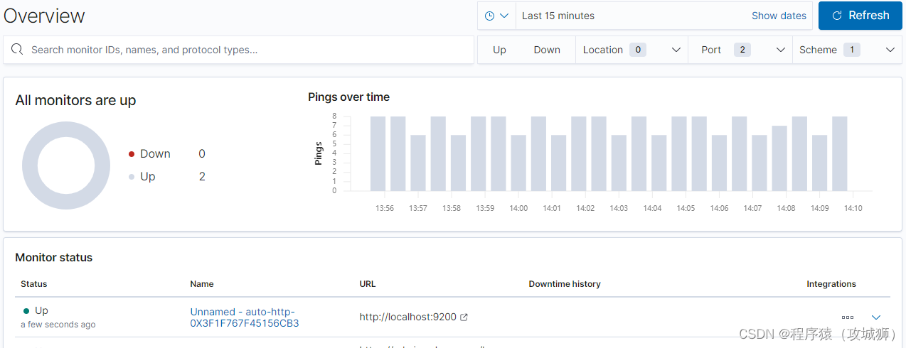 整个监控过程可以简单理解为heartbeat 根据配置的策略,定时进行监控访问,并将监控结果发送到elasticsearch,通过kibana将监控结果以方便的方式展示出来。