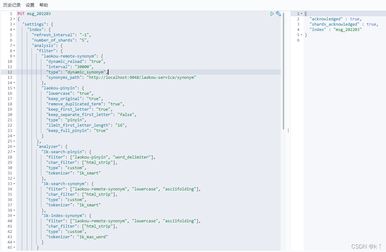 "laokou-remote-synonym": { #同义词分词过滤器名称