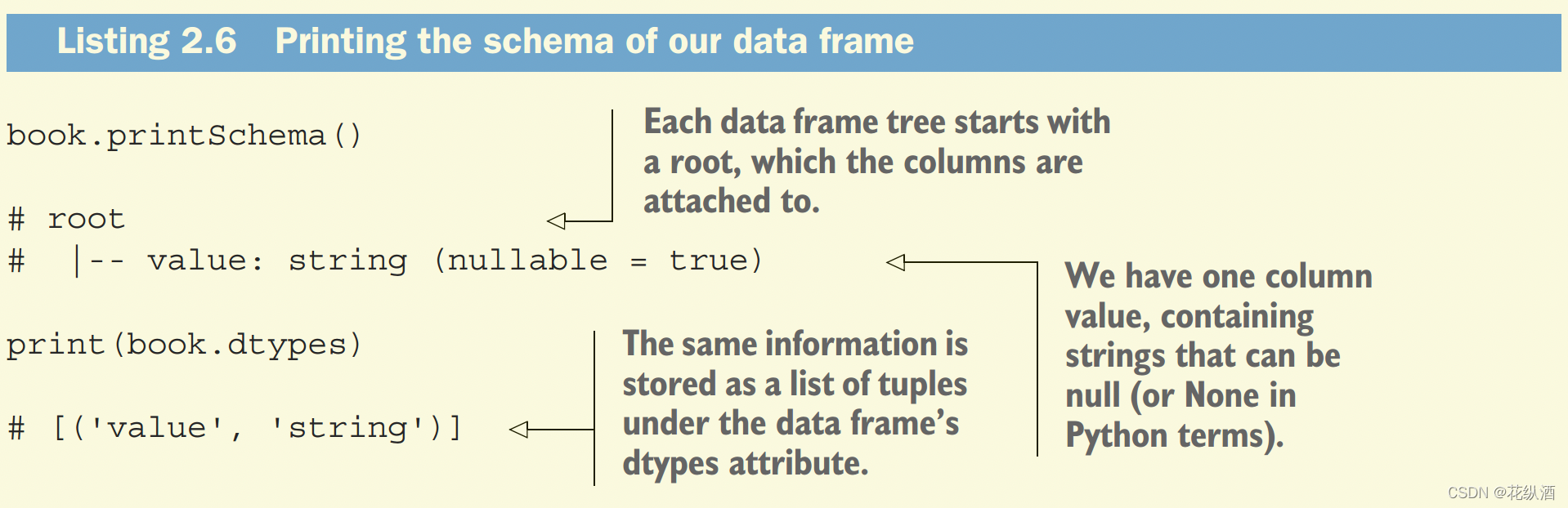 您可能希望更清楚地显示模式。PySpark提供printSchema()以树形形式显示模式。