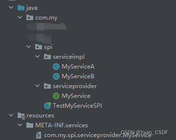 ? ? ? ? 这里有个简单的样例,分别有接口MyService接口以及它的2个实现类MyServiceA和MyServiceB,还有个测试类TestMyServicesSPI。