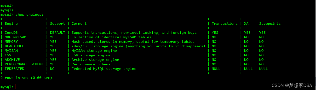 mysql> Begin; Query OK, 0 rows affected (0.00 sec)