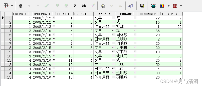 insert into orderItem values(4,2,'文具','笔',36,2);