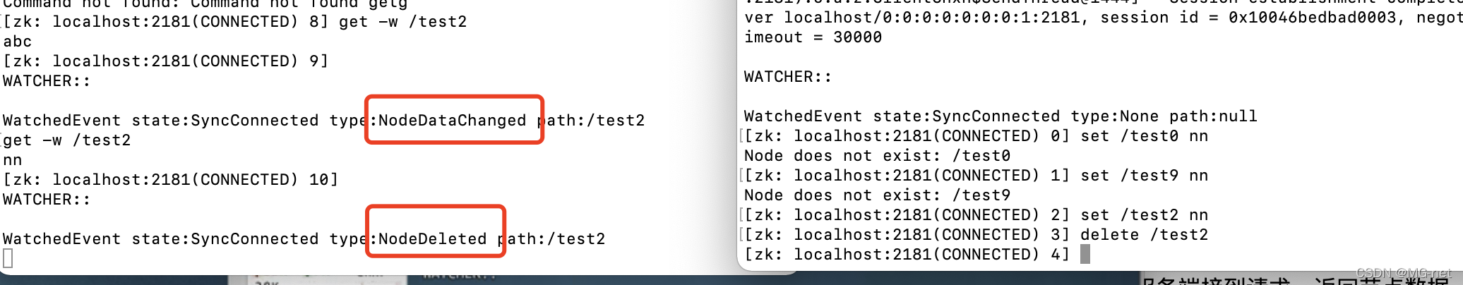 - delete -v 1 /test1 删除数据版本为1的test1节点(乐观锁)
