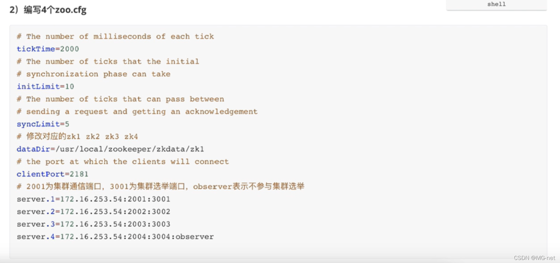 - 创建节点之间的通信,第一个端口是数据通信、第二个端口是集群leader选举的