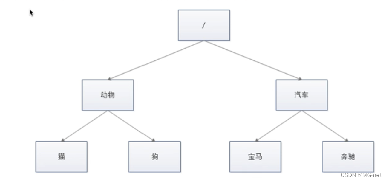 zk是可以存放数据的,数据都是保存在znode上,是以树状结构存放相关数据的: