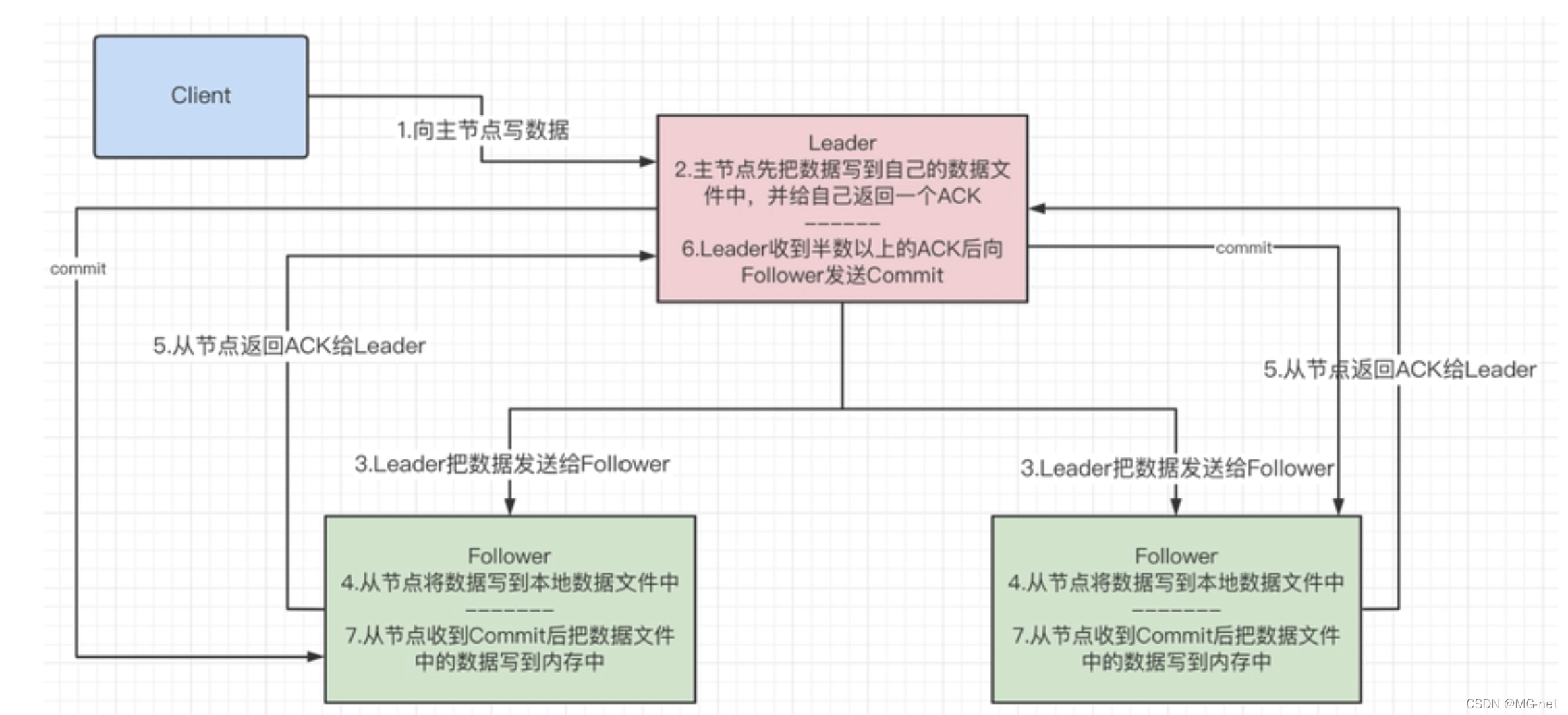 - 主节点把数据写到自己的数据文件中,并返回一个ACK